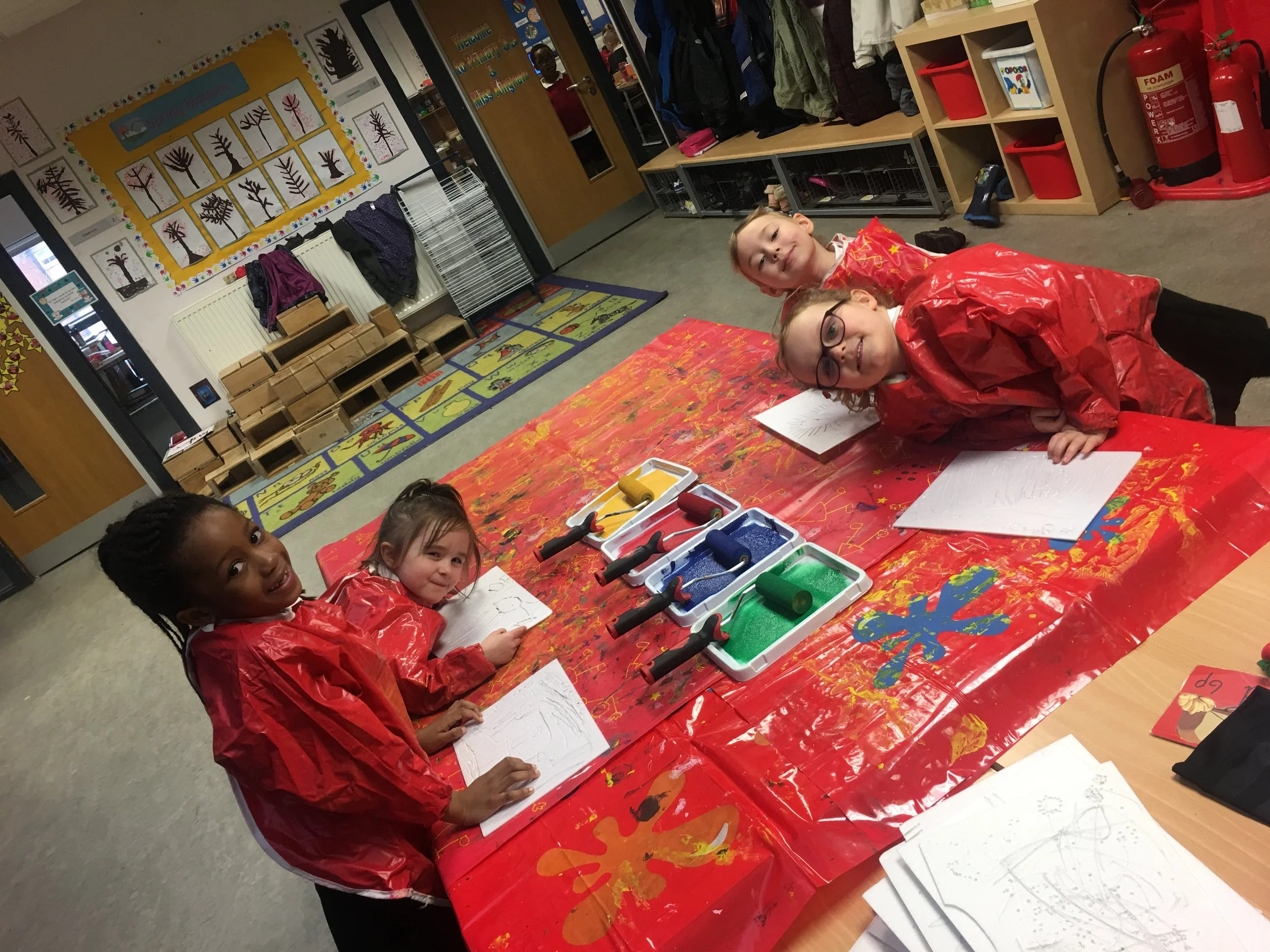 Working with children in Drumchapel primary schools creating signs for Drumchapel Woods. The pupils were introduced to a range of printmaking techniques, all with a nature and active travel theme.